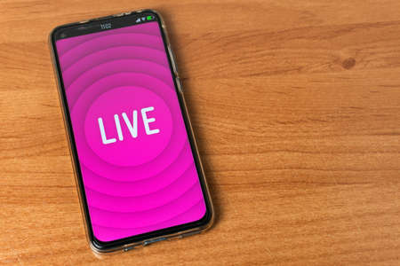 Phone with Live stream on black background