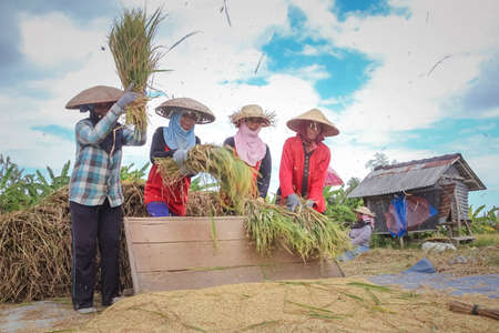 harvesting rice carried out by these tough mothers is a job that is not easy, besides being tired of its work there is also a challenge from the sun.