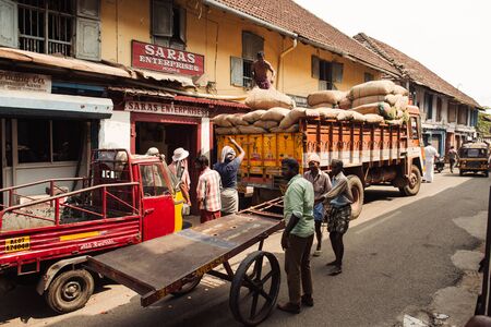 Kochi, India - November 28, 2015: Indian people working on the street in Mattancherry district, Kochi Cochin, Kerala, India