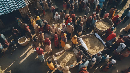 Generative AI : Aerial view of a local food market in Dhaka Bangladesh