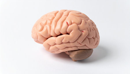Human Brain Model Isolated on Blue Background with Copy Space Representing Intelligence, Neuroscience, and Mental Function