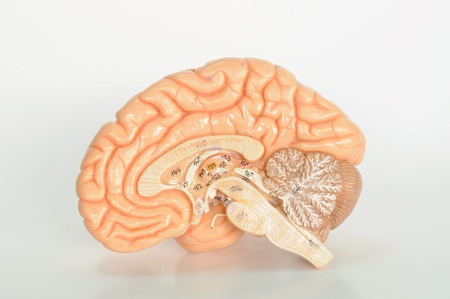 Macrophotography of human brain model demontrating cerebral cortex and arteries