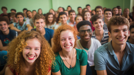 Happy teenage students in the classroom. Generative AI