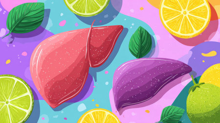 Digital illustration of liver in color background high resolution