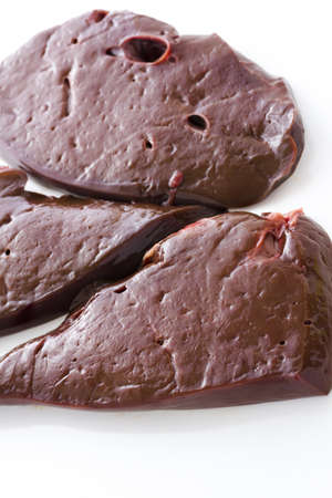 Raw beef liver on a white backgroung.