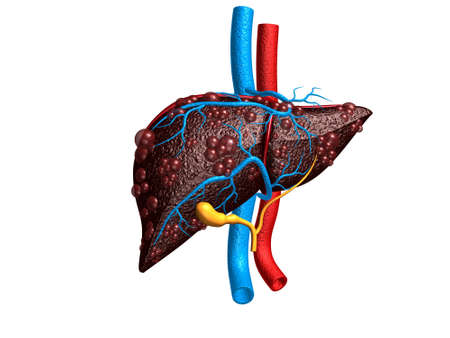 Realistic illustration of cirrhosis of human liver isolated on white