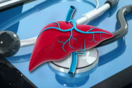 Liver organ with health care concept, 3d rendering. 3D illustration.