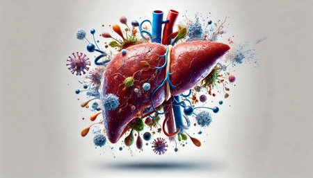 Virus or bacteria infected human liver, liver disease, scientific background