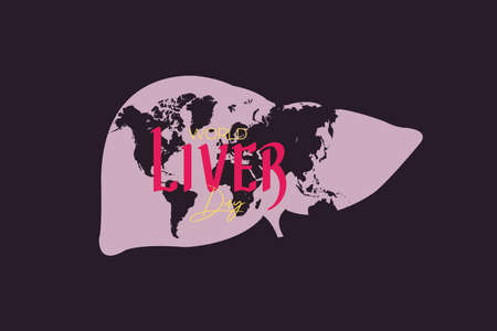Vector illustration on the theme of World Liver Day observed on April 19th every year. World map on liver symbol.Â