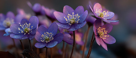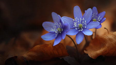 Ethereal blue wonders: hepatica flowers flourishing under the dappled light of a peaceful forest