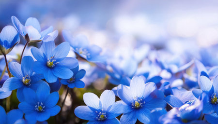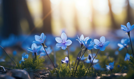 A captivating image of delicate blue flowers blooming gently in soft natural light, showcasing the beauty of spring and the tranquility of nature.