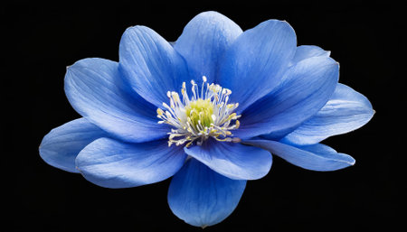Closeup macro of blue anemone hepatica flower during spring