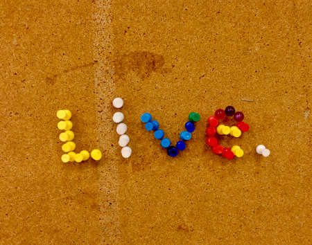 A minimalistic arrangement of white letter tiles that spell out LIVE, set on a light marble surface. An elegant and calming image suitable for various themes.