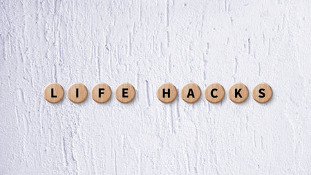 Life hacks motivational phrase concept, Life hacks word written on wood block are shown as business and educational concept