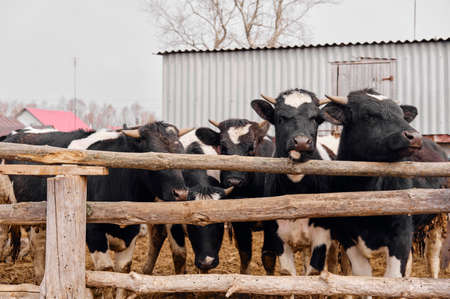 Milk cows on the farm are eating food dairy farm. Agriculture industry, farming and animal husbandry concept.