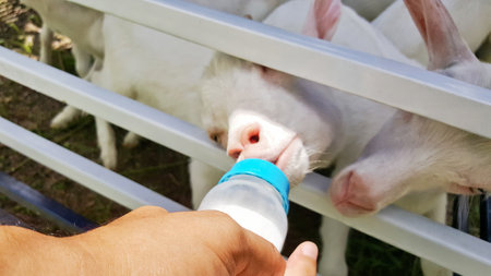 feeding little goat with milk