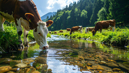 Cows drink water from river