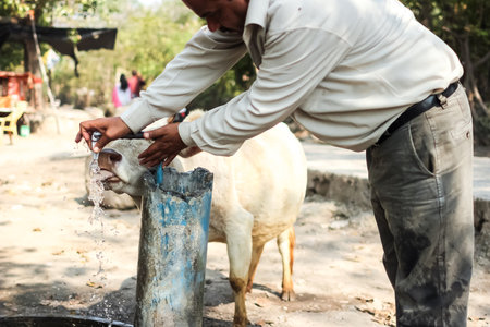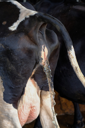 Cow milk animal peeing in farm Thailand