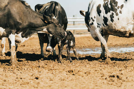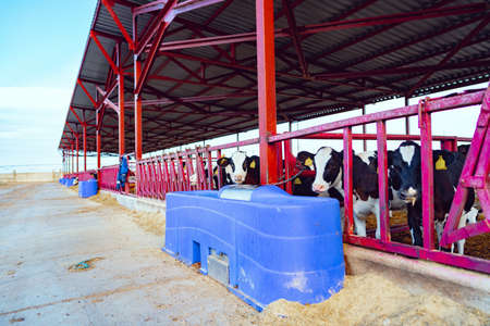 Cows on the form. Milk production. Household animals.