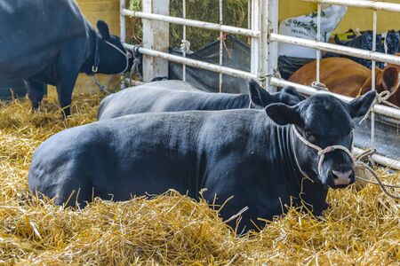 Cows at traditional rural exhibition at prado neighborhood in montevideo city, uruguay