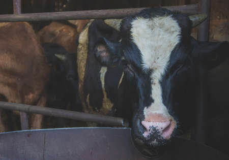 Cows in the stable on a farm. Selective focus.