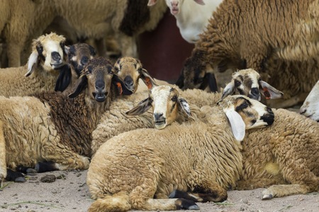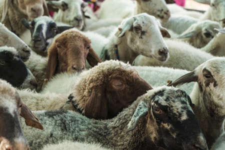 Close up - sheep in captivity, their fur and meat will be taken later for consumption