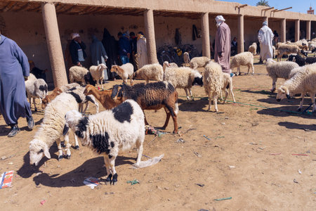 Kolkata, West Bengal, India - 11th August 2019 : Goats are being sold in market during Eid al-Adha or 'Feast of the Sacrifice' or Eid Qurban or Festival of the Sacrifice,to be sacrificed ritually.