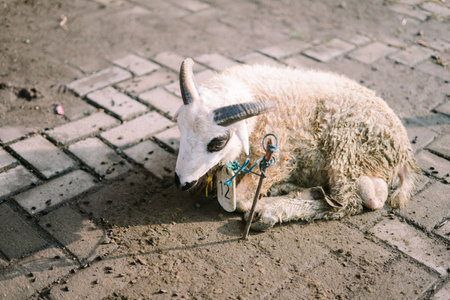 goats as sacrificial animals held by many people for safe, Eid al-Adha celebration