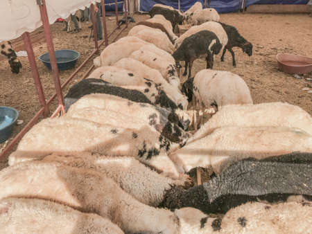Sacrificial ram, Domestic Male Sheep waiting to be purchased with other for The Sacrifice Feast Eve.