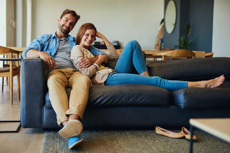 The greatest thing you can invest in marriage is time. Shot of a happy young couple relaxing together on the sofa at home.