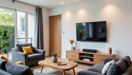 Modern living room with smart technology, contemporary comfort. generated by ai