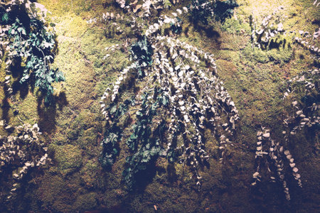 Green plants on the rough wall
