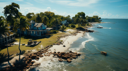 Generative AI : Aerial View Of River And Paraty Historical City Center Surrounded In Tropical Palm Trees Islands In Distance Rio De Janeiro Brazil