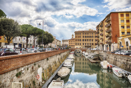 Canal in the center of Livorno, Tuscany, Italy