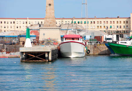 Boats in a pier of Livorno, Italy, in a warm summer day
