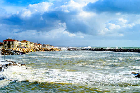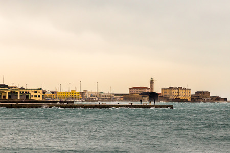 a windy winter afternoon at the port of an italian city