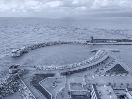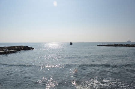 a view of the sea from the pier in Mascagni Terrace Livorno, Italy