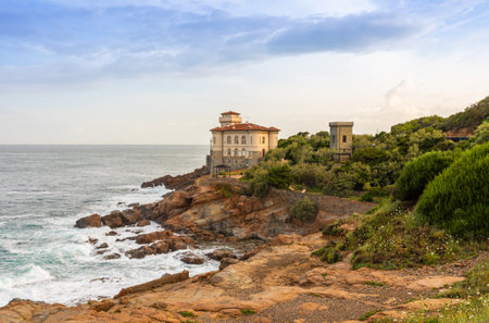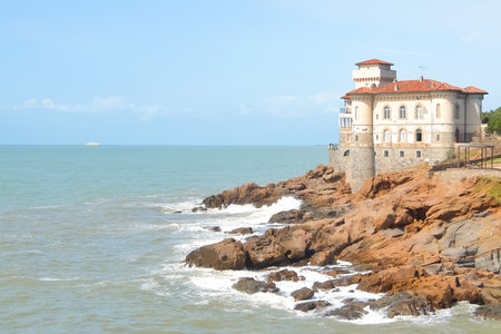 Boccale castle, famous landmark on cliff rock and sea in autumn. Livorno, Italy.
