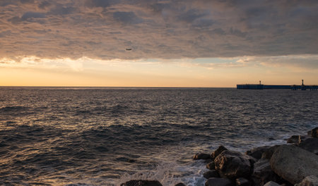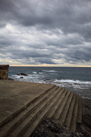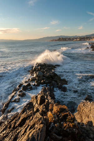 storm surge at sunset in Genoa in Liguria, Italy
