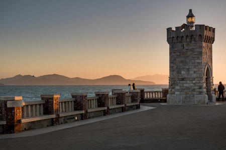 Unknpwm people and panoramic view on sunset, Castiglioncello, Livorno municipality, Tuscany