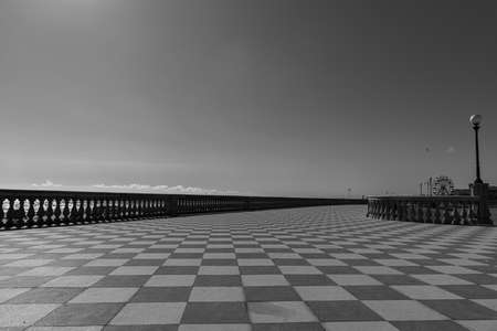 Leghorn, Tuscany Italy. Mascagni Terrace. Terrazza Mascagni, is a square overlooking the sea, with its very special black and white checkered floor.