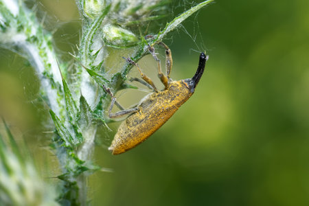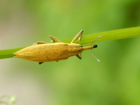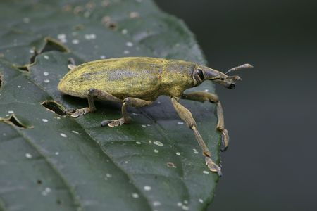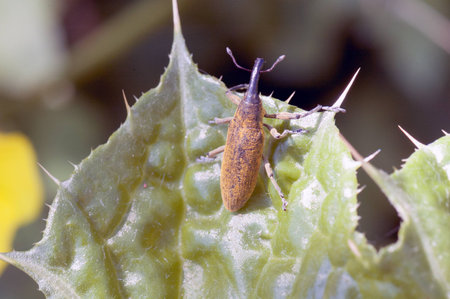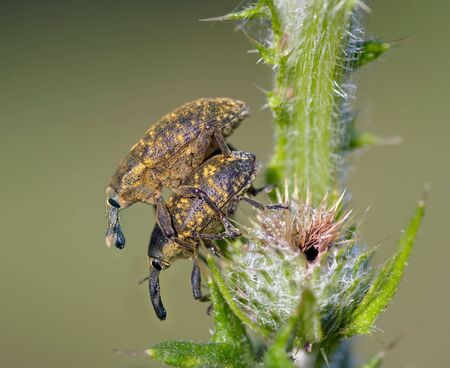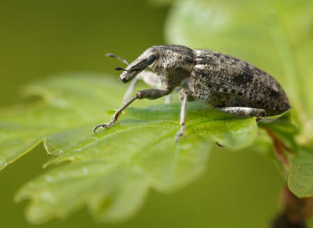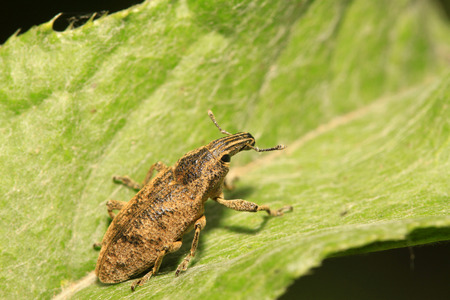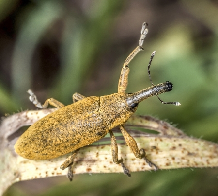Detailed closeup of one of the broad-nosed weevils, the beet leaf weevil, Tanymecus palliatus which likes to feed on various thistles
