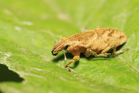 Green weevil is staying on the leaf