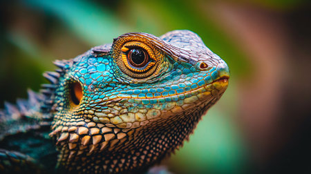 Close-up of a Colorful Lizard with Intricate Scales