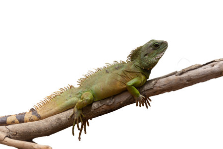 A detailed studio shot of a European green lizard, showcasing its scales and vibrant colors against a clean white background. Perfect for reptile enthusiasts.
