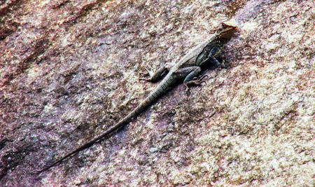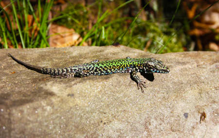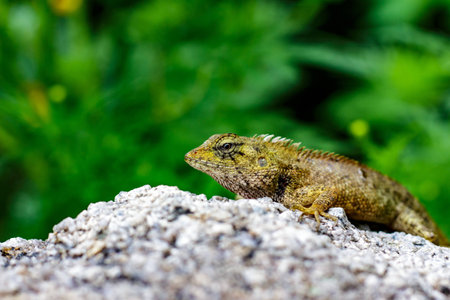 cute lizard taking sun on rock stone. idea and concept of the pristine nature