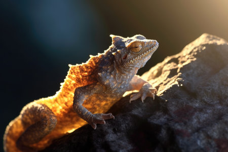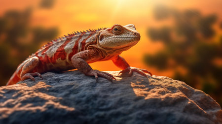 Close-up of a gecko on a rock in the mountain at sunset. amazing wildlife. generative AI. amazing wildlife. generative AI