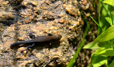 The Common Lizard is a small reptile that has a long slender body and a long tail. Greece Ioannina.