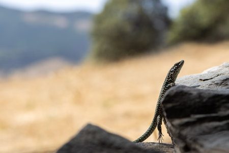 Posdarcis tiliguerta on a rock in the sun in Gredos