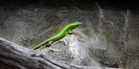 Green lizard on wall, green lizard sunbathing on branch, green lizard climb on rock